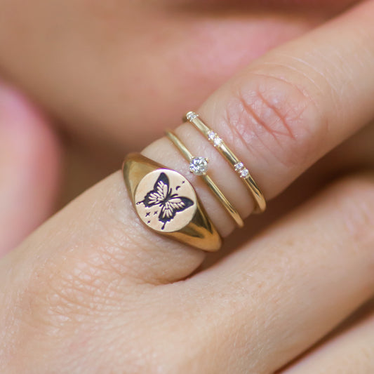 Tiny Diamonds solitaire ring 14k gold