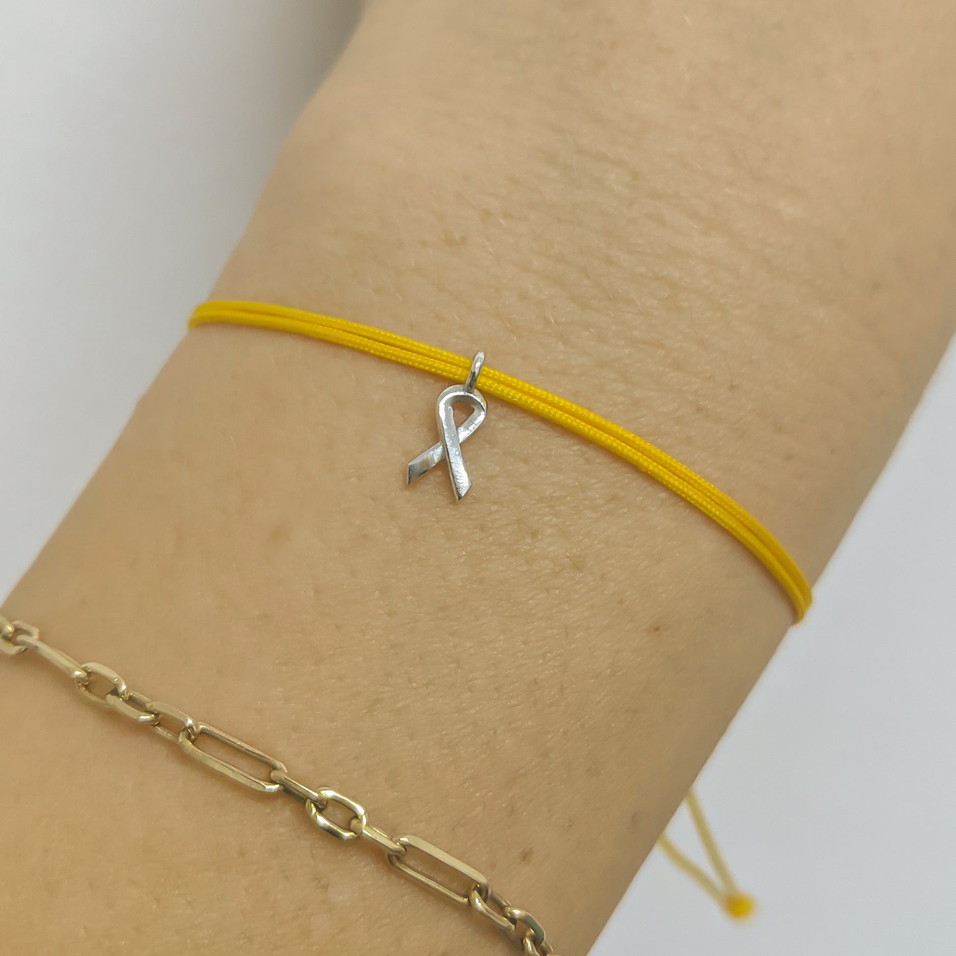 נתנו את האופציה לרכוש את התליון בזהב 14 קראט או בכסף 925, כתליון בלבד או יחד עם צמיד צהוב. | גודל התליון-8*5 מ"מ